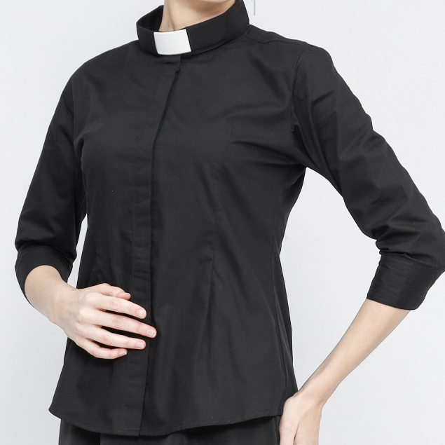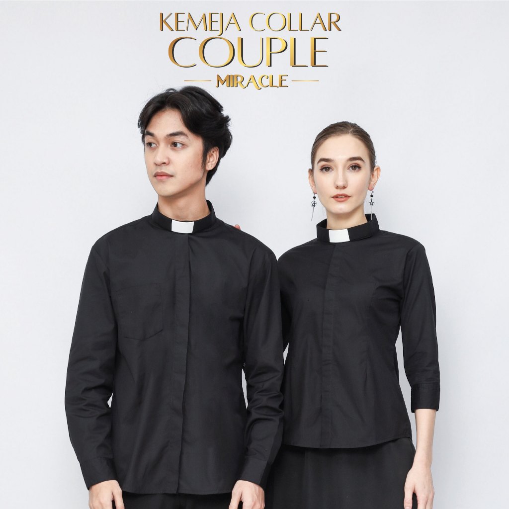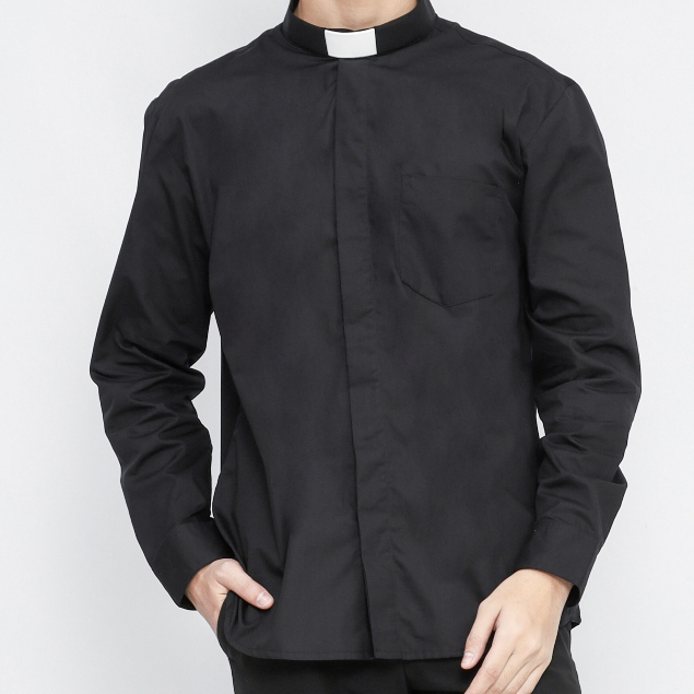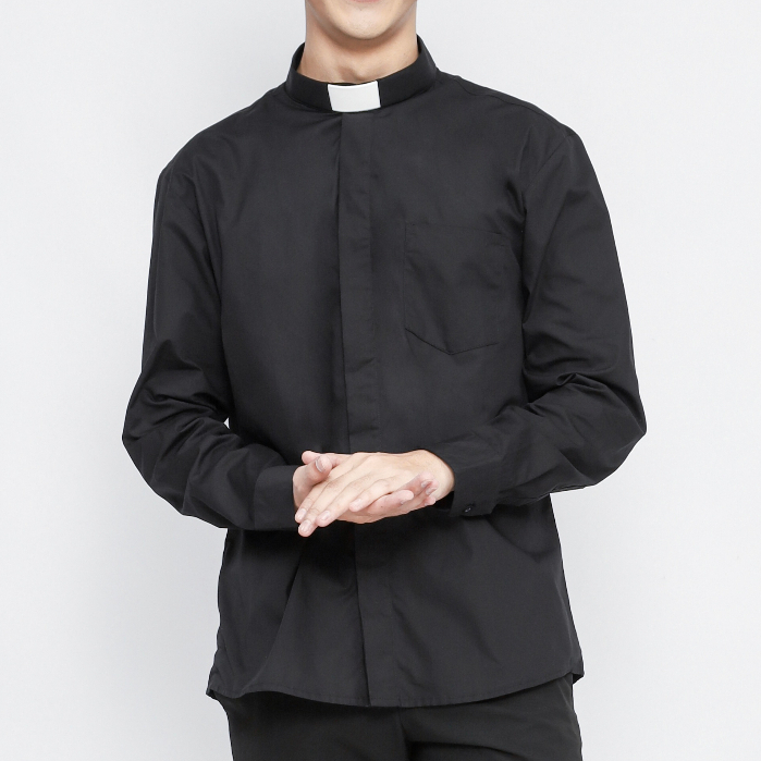 Pendeta - New Kemeja Collar Hitam Polos Japanese Cotton - Jos Miracle Bandung