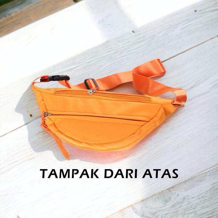 Tas Pinggang Fashion Unisex Tas Selempang Import Motif Polos Bahan Nilon New Collection Lw-2 Wanita - Orange