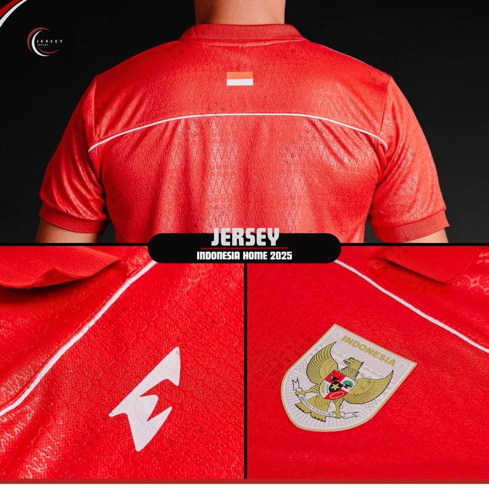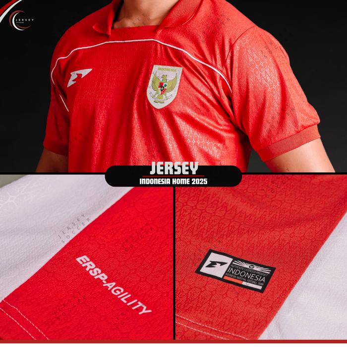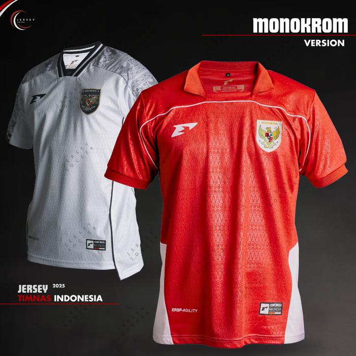 Baju Kaos Jersey Timnas Indonesia 2025 Terbaru New Bahan Brazil Monokrom Embos Lengan Pendek Unisex - Merah-Monokrom Pol