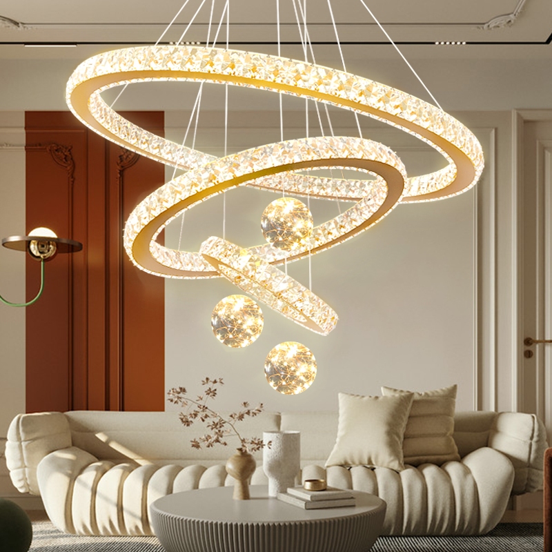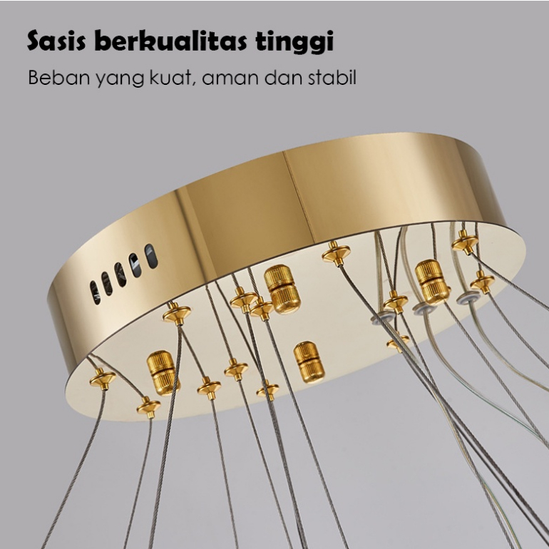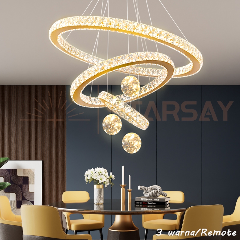 GaransiK9 Kristal Lampu Gantung 3 RING Remote 20+40+60cm 3 Warna Aesthetic K9 Kristal Chandelier Minimalis ModernCeiling Lamp