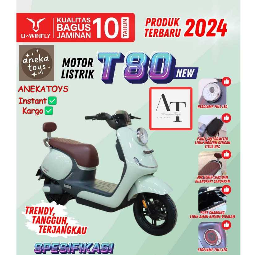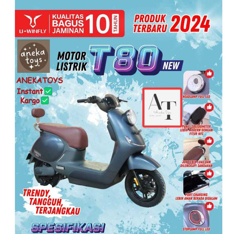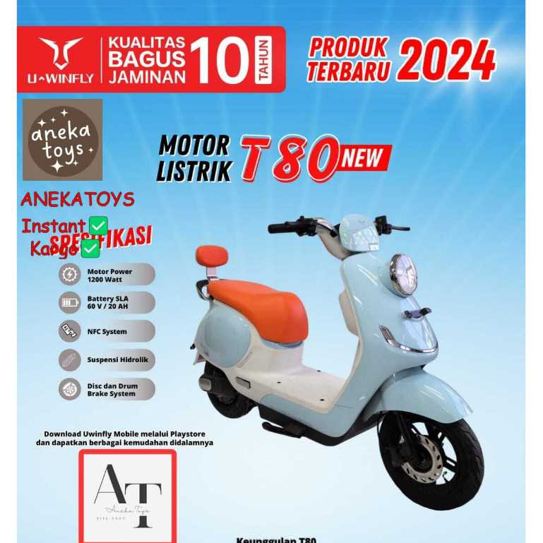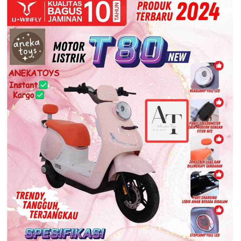 (BONUS POMPA) Motor Listrik Uwinfly T80 Molis Baterai Aki SLA 60V20Ah Motor Power 1200 Watt