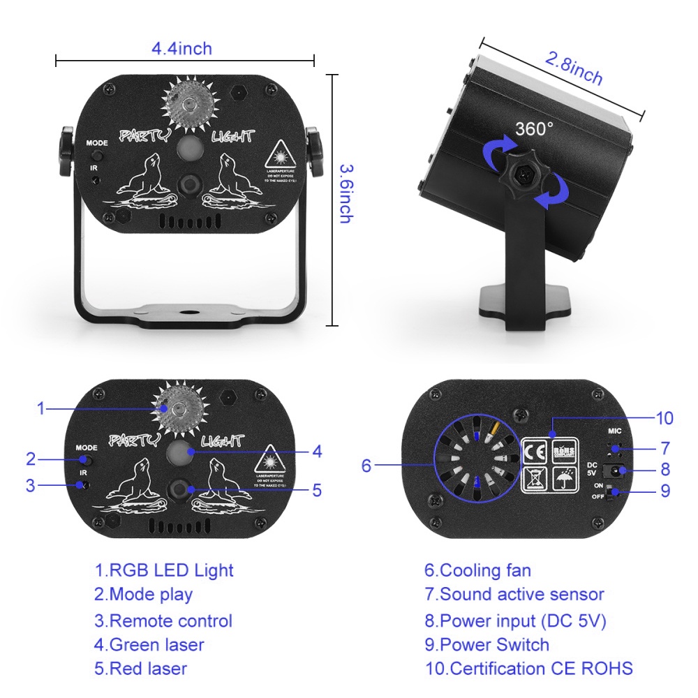 Lampu Disco Laser DJ Remote Control Lighting Lampu Panggung Lampu Disco Laser Ikut Musik Suara Rgb