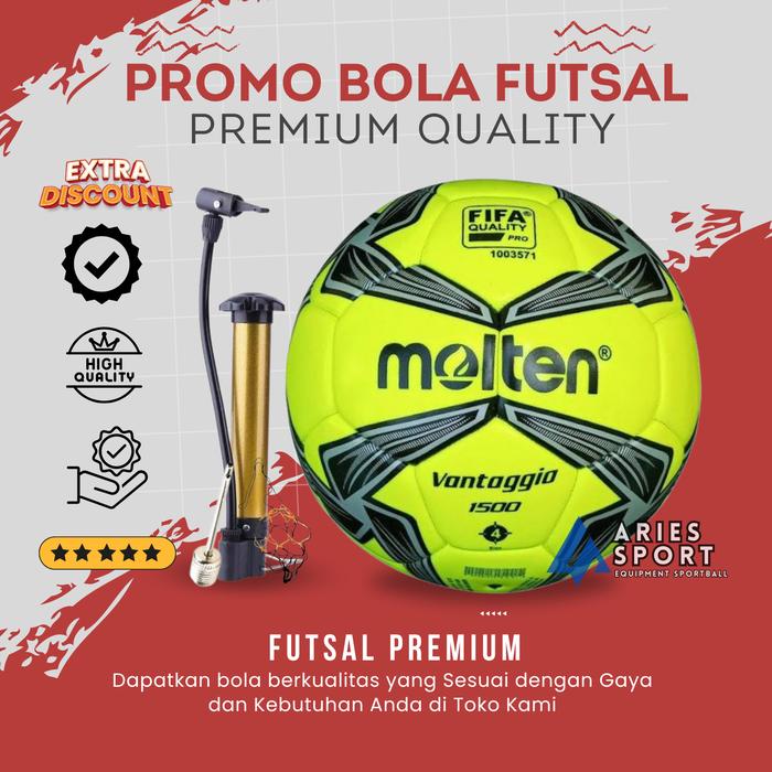 Bola Futsal Jahit Mesin/Bola Futsal Molten/Bola Futsal Ortus - Ortus Kuning, Bola + Pentil + Jaring