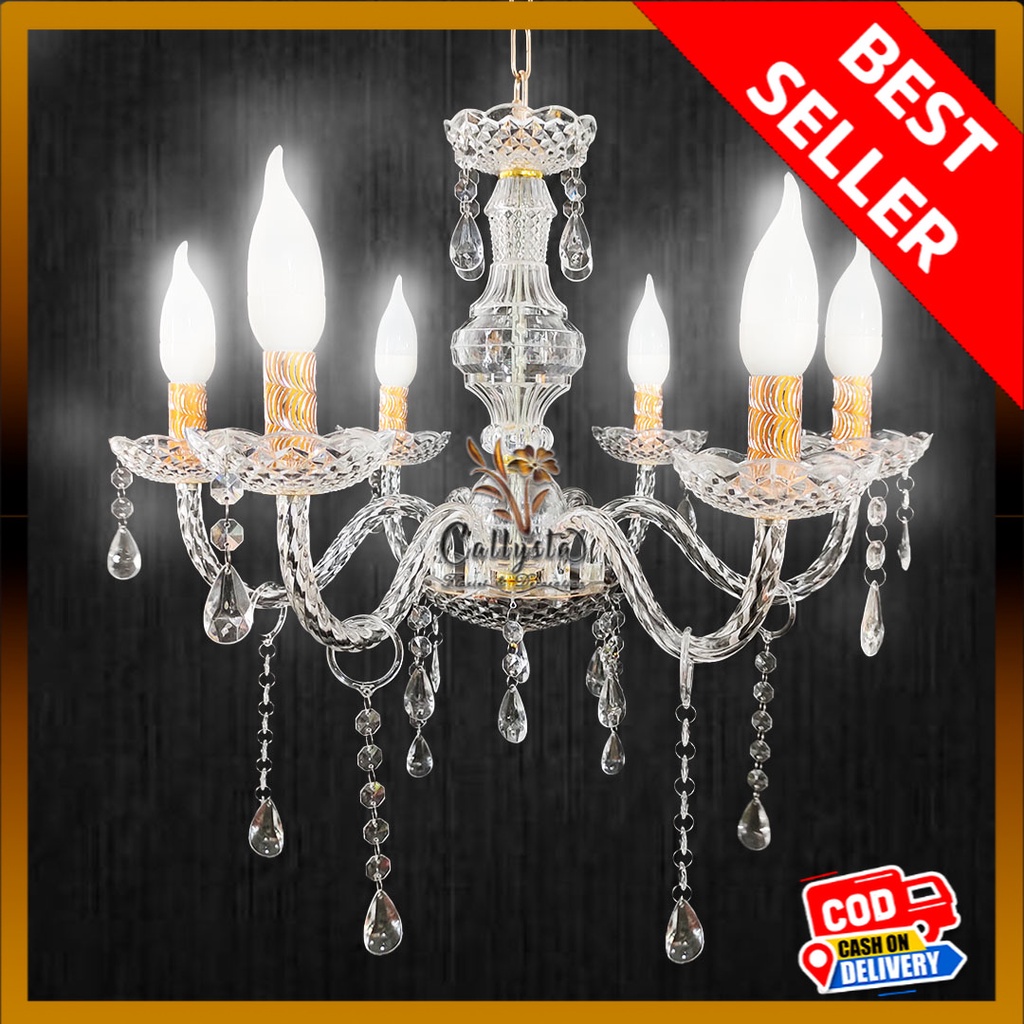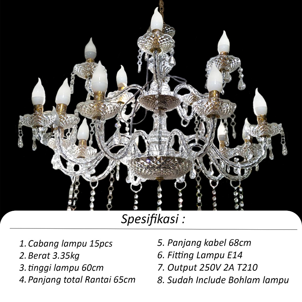 Lampu Chandelier Lilin Gantung Kristal Akrilik X6 Dan X15 SUDAH TERMASUK LAMPU LILIN - Ruang Tamu Hias Lilin Kaca Cabang 6 & 15