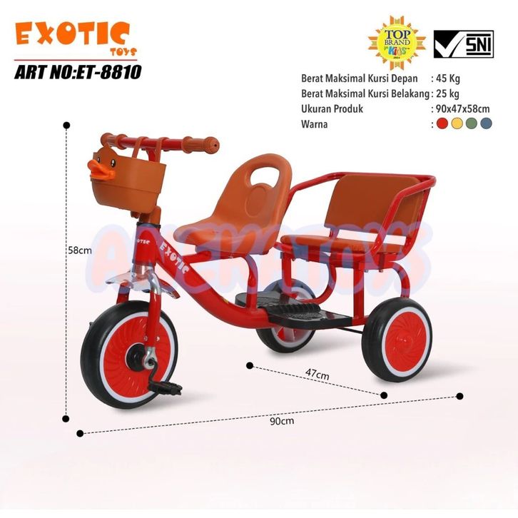 TERLARIS EXOTIC TOYS SEPEDA RODA TIGA ANAK KEMBAR EXOTIC ET8810 DENGAN KERANJANG BEBEK EVA DAN DESAIN UNIK