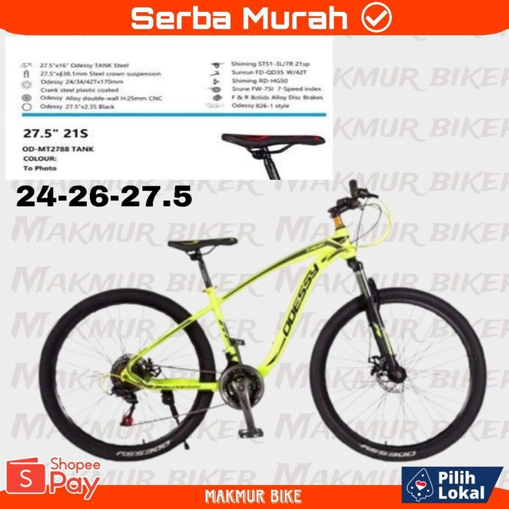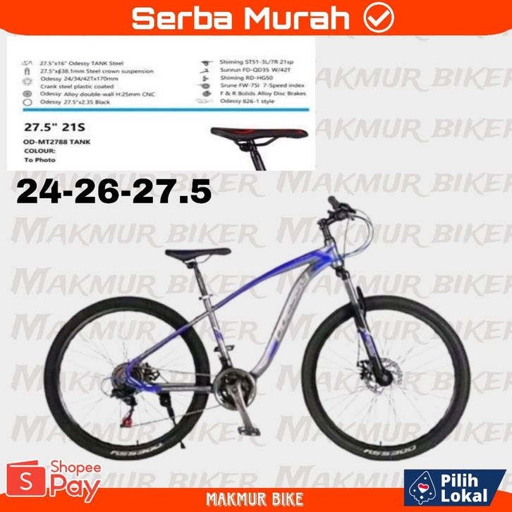 TERLARIS SEPEDA GUNUNG MTB ODESY TANK UK-24" / 26" / 27.5" / MT-2788 21SP ORIGINAL (BONUS TAS SEPEDA)