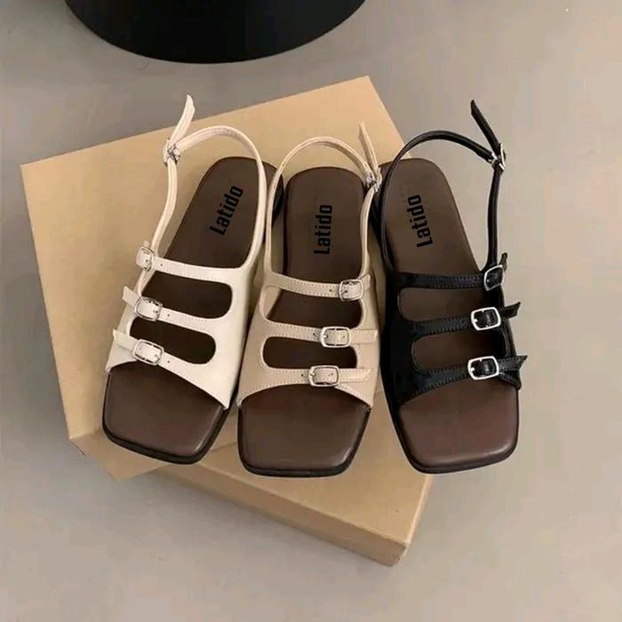 Latido Sandal Wanita Flat Busa Empuk Sendal Platform Cewek Kekinian Karet - Ivana Hitam, 37