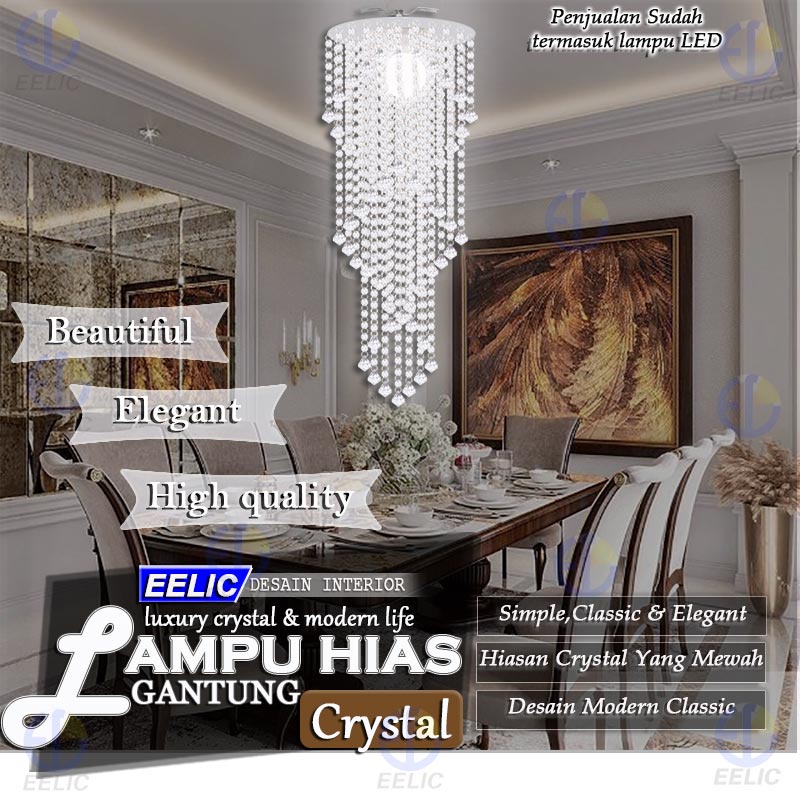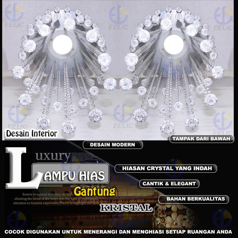 EELIC LHG-239 Lampu hias gantung manik crystal memberi kesan elegant desain interior modern + 1 pcs lampu led (LAU-Z5W) 5 WATT
