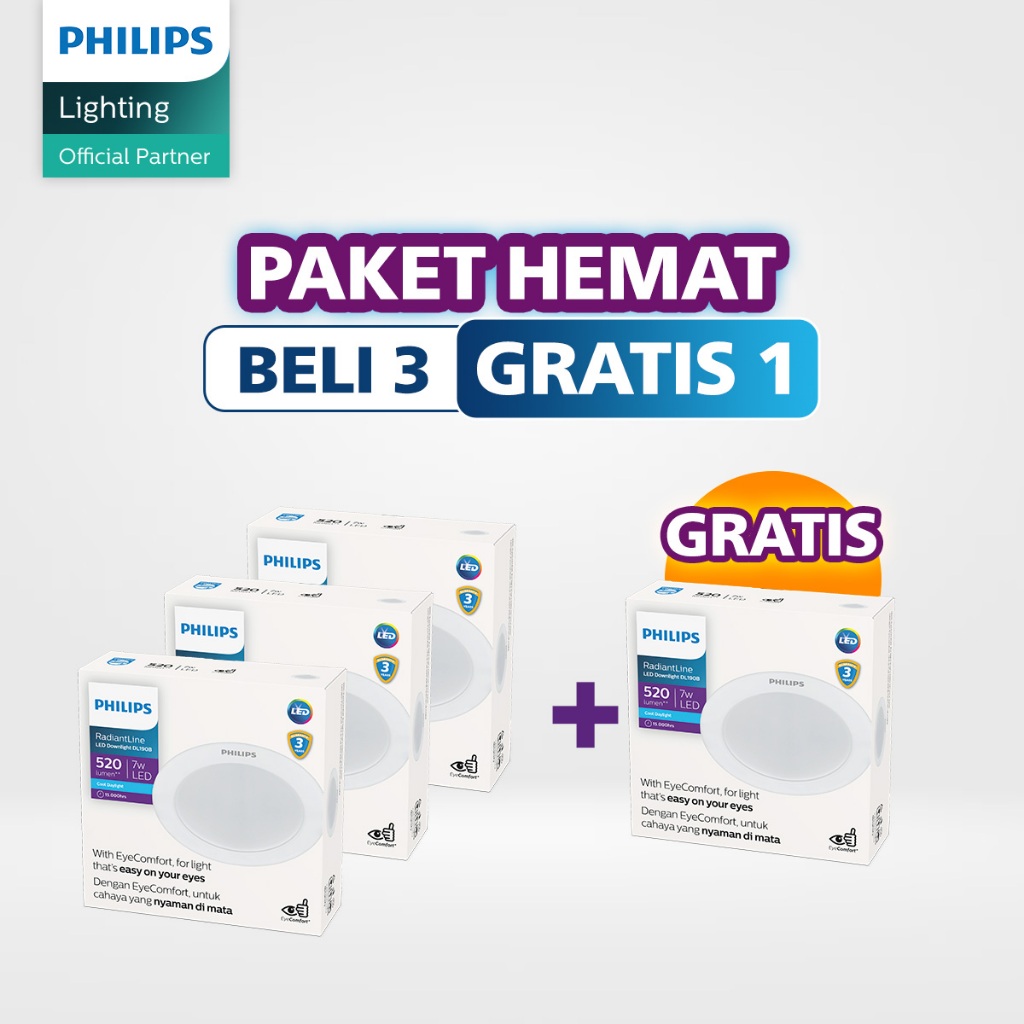 Beli 3 Gratis 1 Philips Lampu Radiantline Downlight DL190B 7W Putih