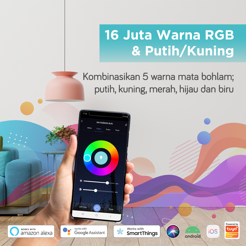 BARDI Smart Light LED Bulb Lampu Pintar 12 Watt RGB WW WiFi Wireless IoT Home Automation