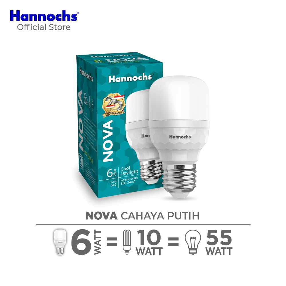 Hannochs Lampu Bohlam LED NOVA 6W Cahaya Putih Paket isi 10pcs