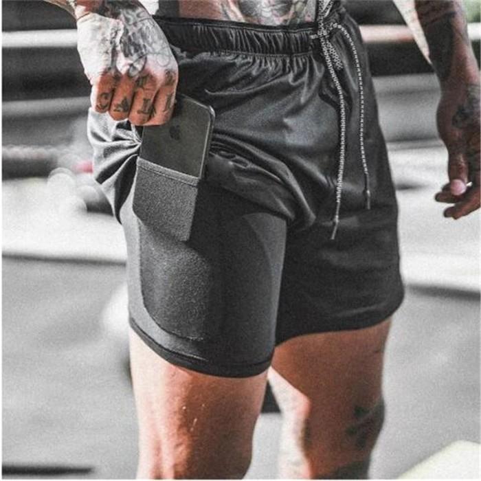 CELANA PENDEK OLAHRAGA LARI JOGGING FITNESS GYM PRIA WANITA 2IN1 - HITAM