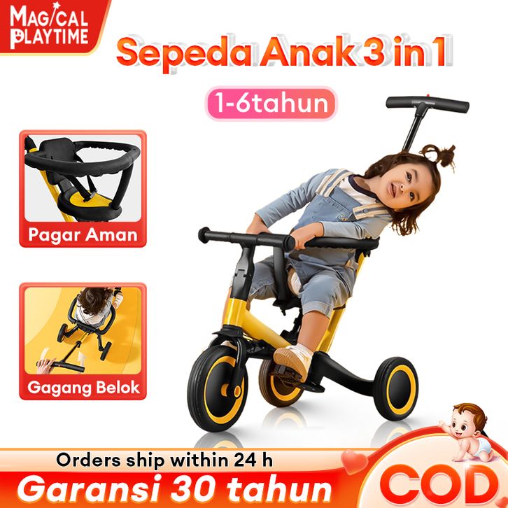 TERLARIS 【MAGICAL PLAYTIME】3IN1 SEPEDA ANAK RODA 3 BALANCE BIKE STROLLER BAYI 3 RODA DILIPAT SERBAGUNA