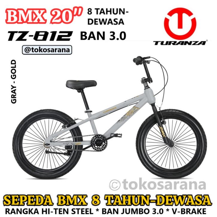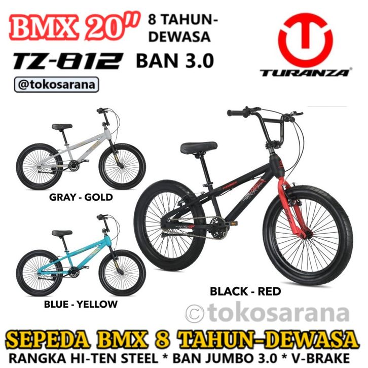 TERLARIS TURANZA TZ812 SEPEDA BMX 20 INCI BAN JUMBO 3.0 ANAK 8 TAHUN-DEWASA REM V-BRAKE * STEEL FRAME