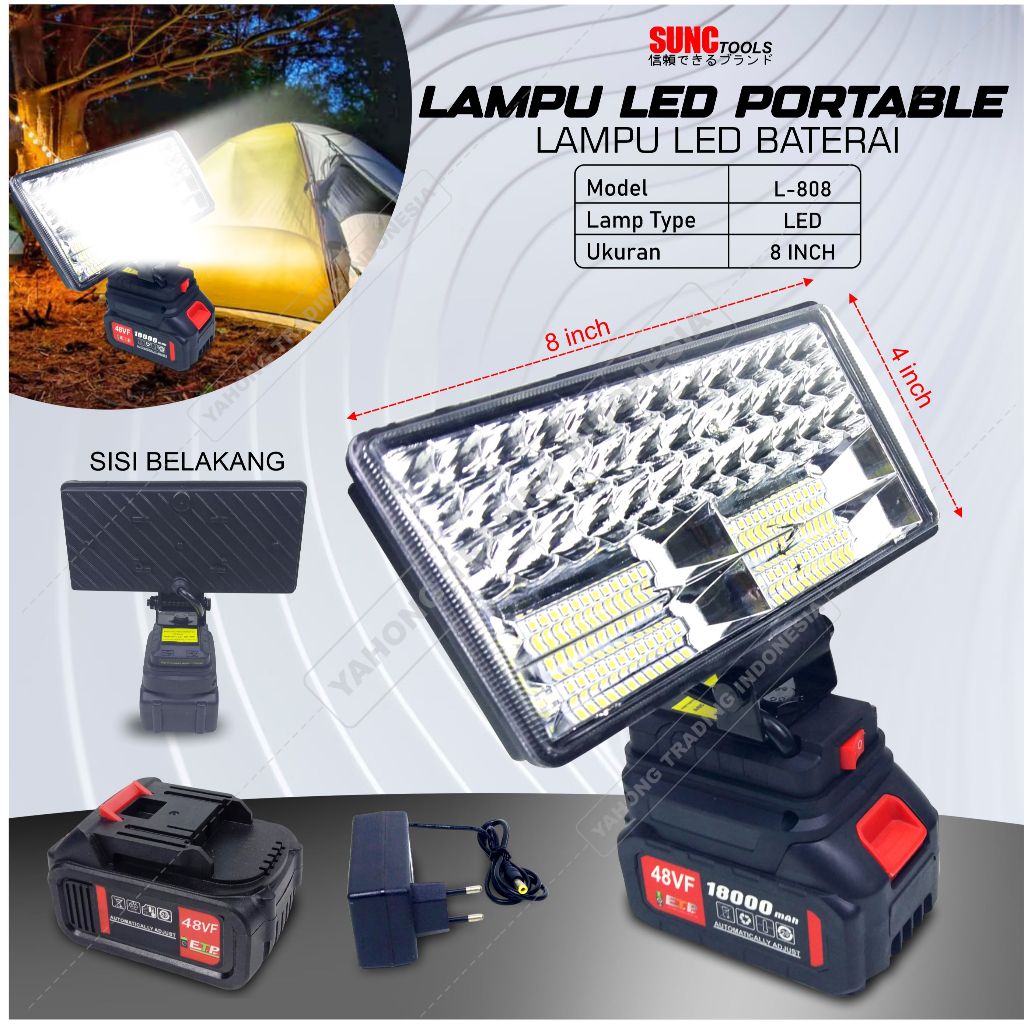 Lampu LED Portable 8" Inch Tenaga Baterai SUNC TOOLS