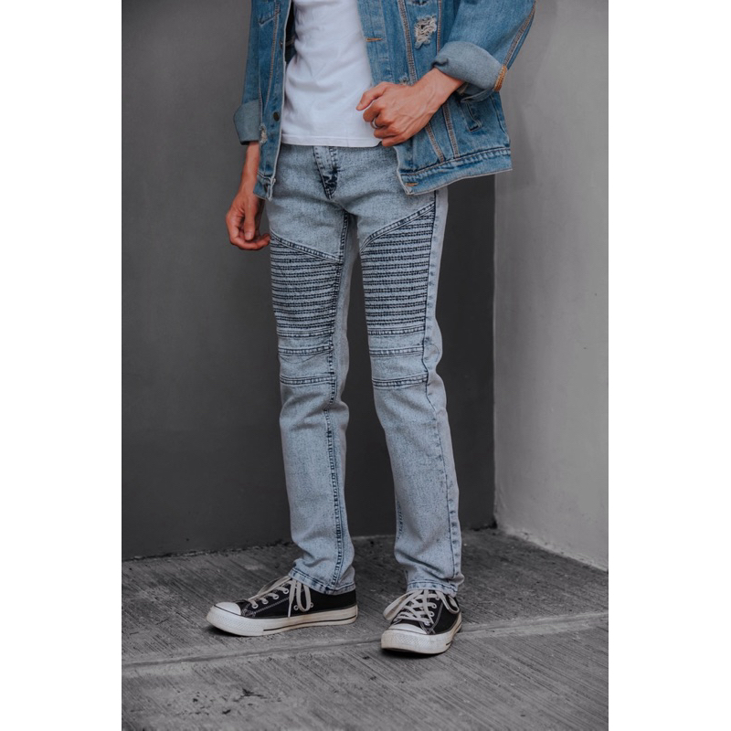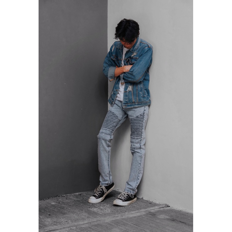 Celana Bikers Riders Polos Panjang Jeans Biker Sobek Skinny Slim fit - Denim Terbaru Robek Lutut