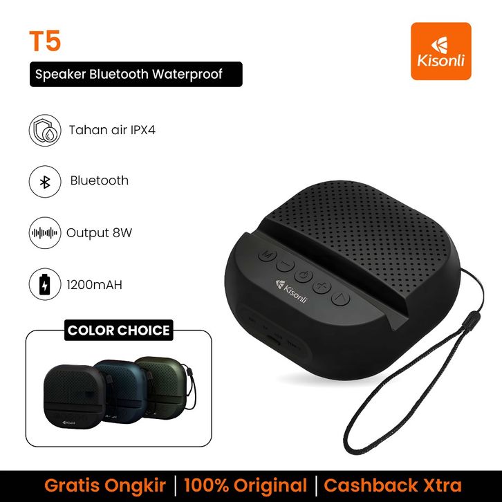 KISONLI Speaker Bluetooth T5 Mini Anti Air IPX4 With Holder Stand Portable