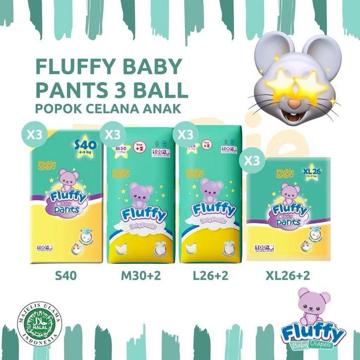 FLUFFY BABY PANTS PAKET 3 BALL S40/M30+2/L26+2/XL26