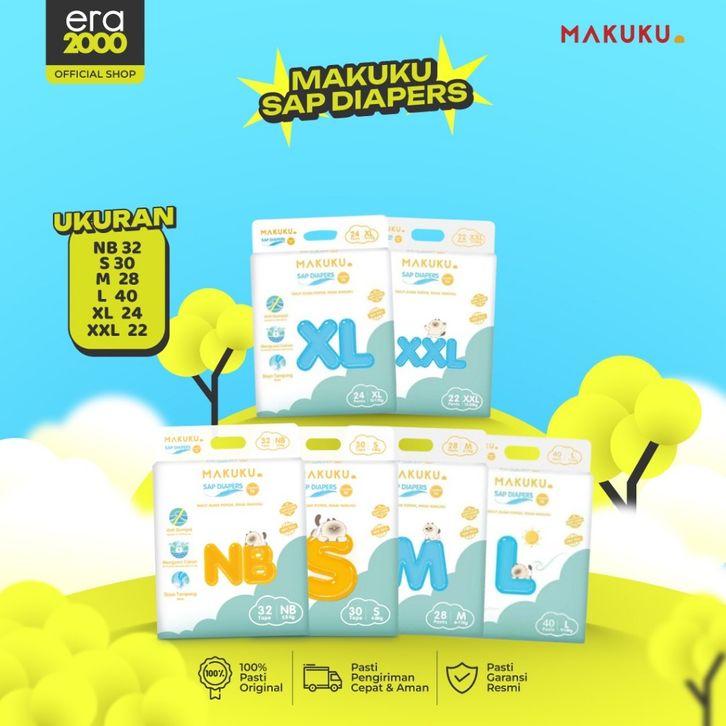 Era 2 2 Pack Makuku SAP Diapers Comfort Fit Tape/Pants NB32/S30/M28/M42/L26/L40/XL24/XL38/XXL22