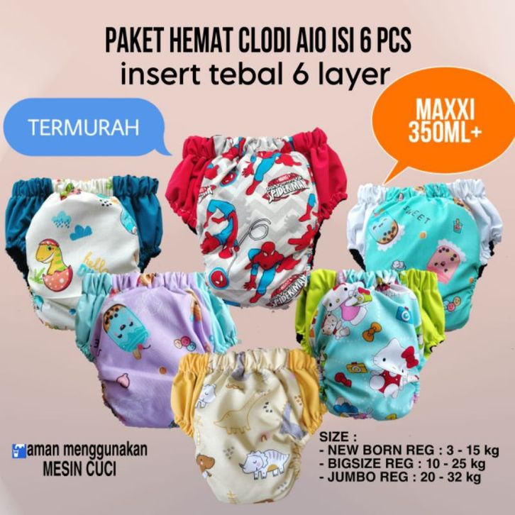 I AIO PAKET HEMAT ISI 6 CLODI PANT POPOK BAYI POPOK KAIN