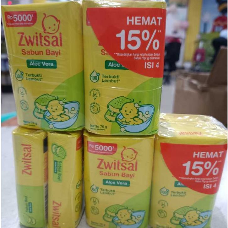 Paket Hemat Sabun Batang Bayi Zwitsal Aloevera dapat 4 pcs 70g
