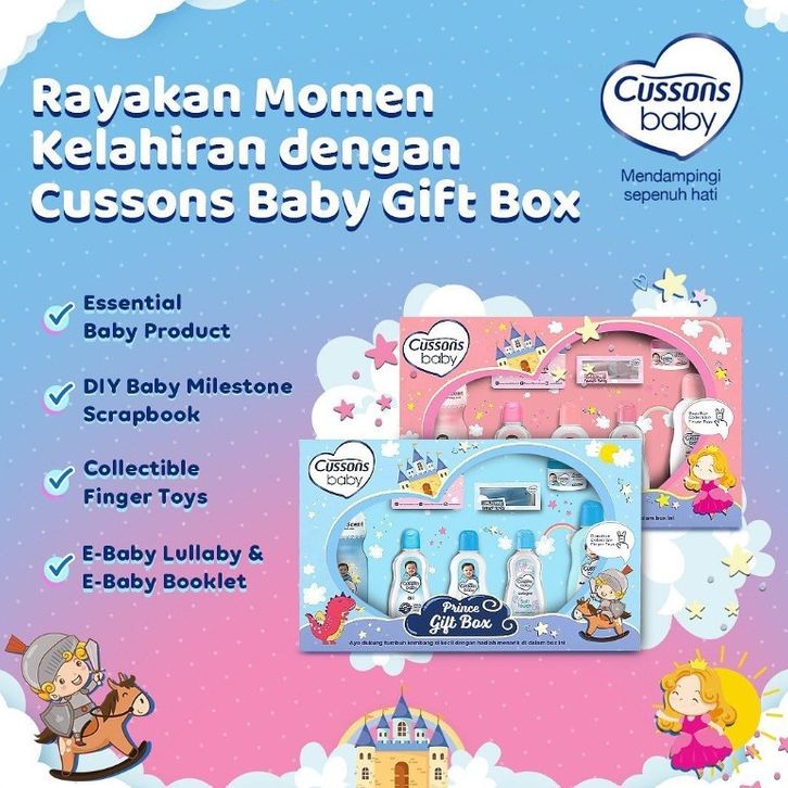 CUSSONS Gift Each Princess Prince Gift Box Isi 6 Pcs Pink Biru / New Born / Set Box Hamper Bayi