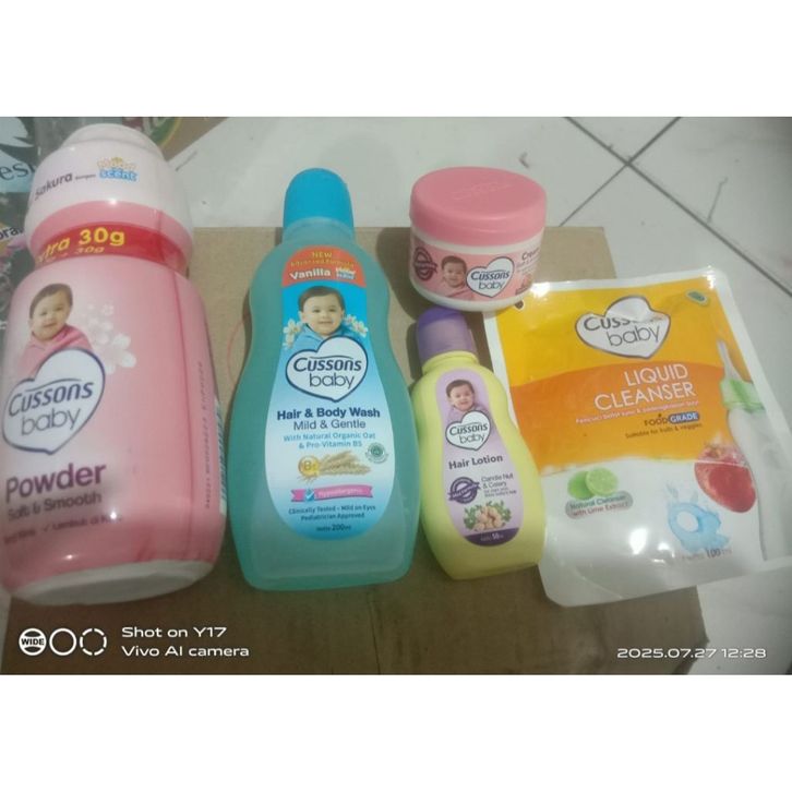 Cussons travel pack isi 4 & 5 HAIR N BODYWASH 200ml, BEDAK 150g, pencuci botol 100ml, hair lotion