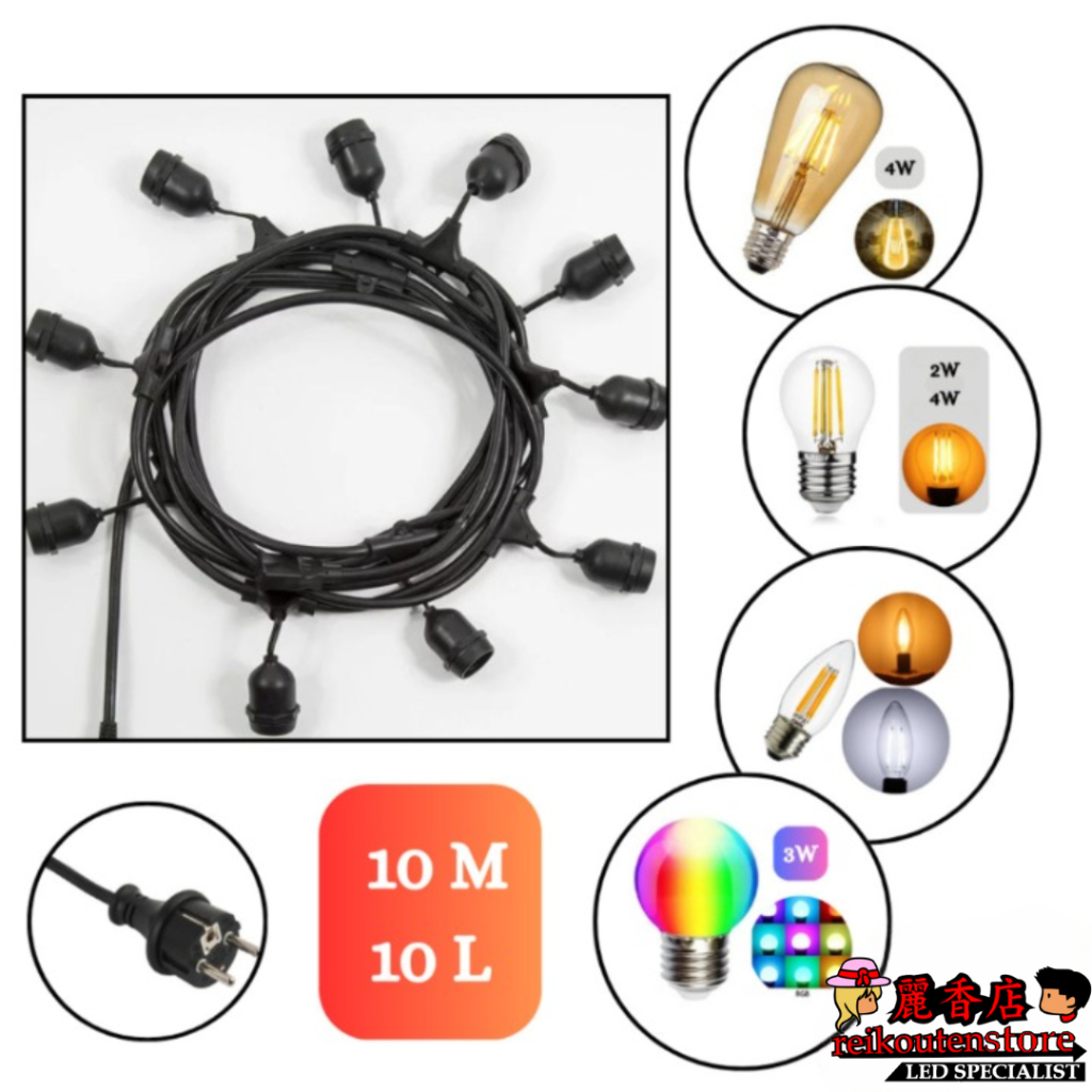 KOMPLIT KABEL 10 METER 10 LED BULAT 4W OUTDOOR WATERPROOF LAMPU GANTUNG 10M 10L CARNAVAL CAFE TAMAN