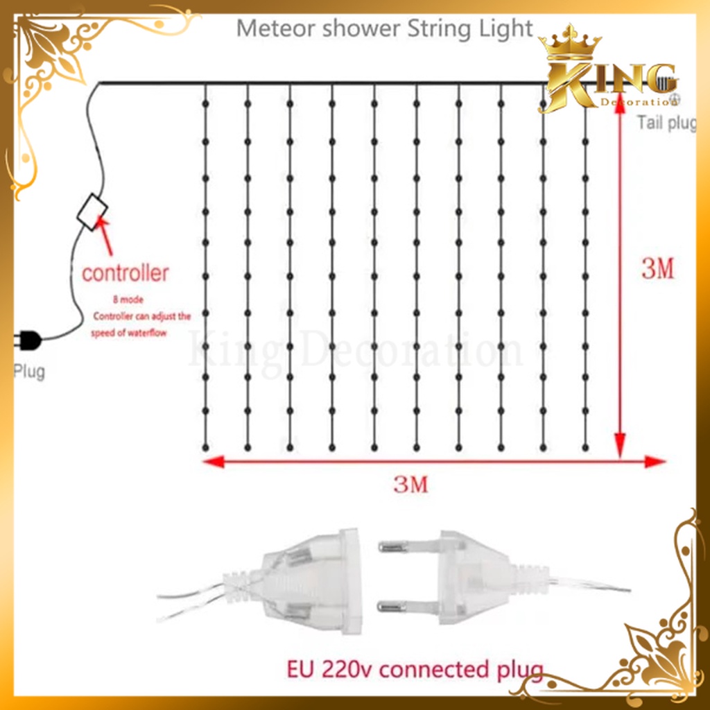Lampu Air Terjun 3x3 Meter Waterfall Lighting Lampu Tirai Hujan LED Dekorasi Ruangan