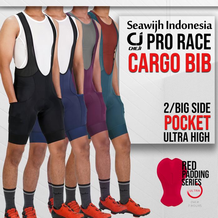Celana Padding Sepeda Bib Cargo Cheji Pro Race Side Pocket Gravel Cycling Original - Black, S