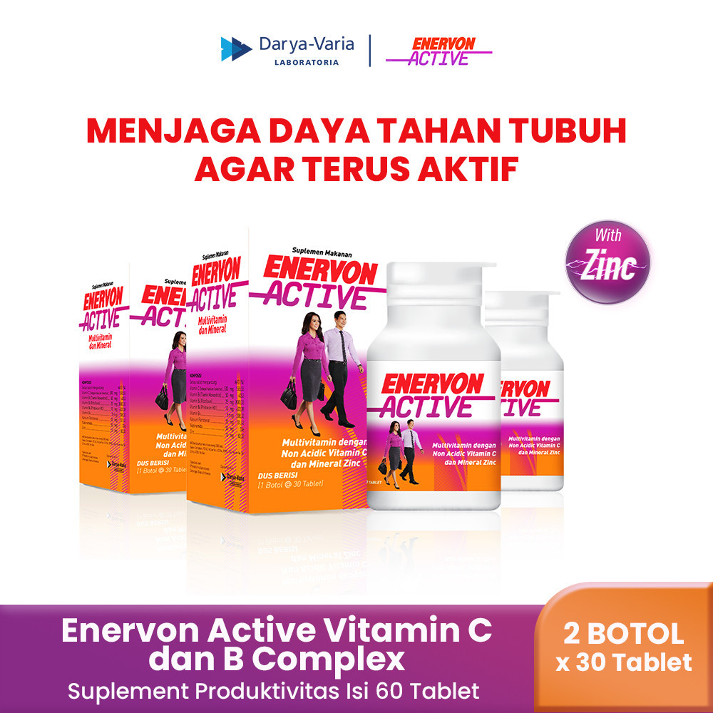 Enervon Active Botol Vitamin C, Zinc, B Complex Suplement Produktivitas Isi 60 Tablet (2 Botol x 30 Tablet)