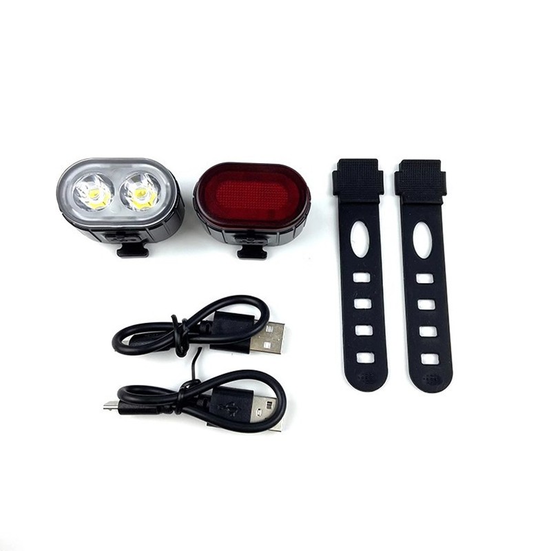 Lampu Sepeda LED Bicycle Tail Light Set 2 Buah Lampu Depan Utama Sorot Rem Belakang Charger USB Waterproof Tahan Air Huj