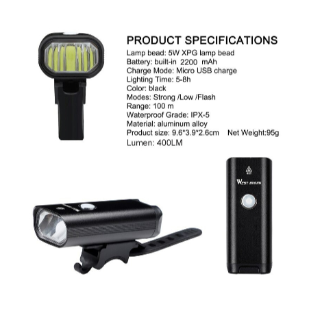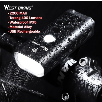 West Biking Lampu Sepeda USB Rechargeable 400LM 2200mAh 0701257