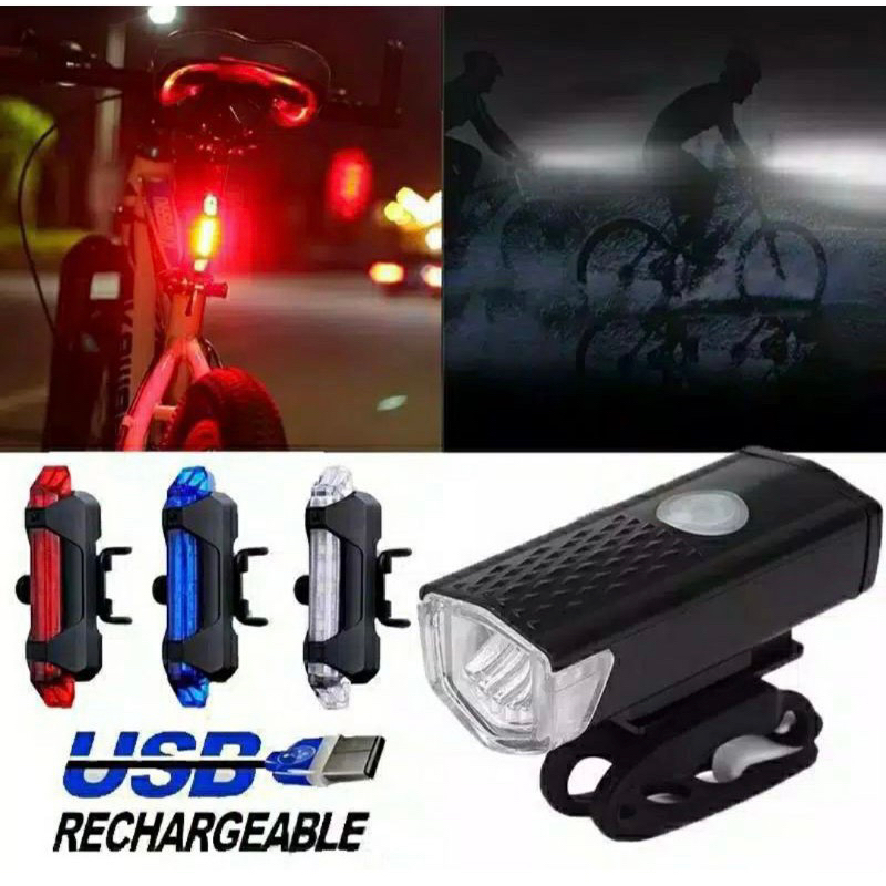 PROMO***Paket lampu sepeda depan dan belakang LED USB Charge