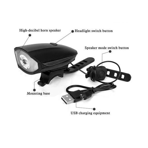 Lampu depan Klakson sepeda LED waterproof rechargeable Terang Nyaring