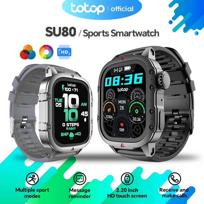 Totop SmartWatch SU80 Sports Bluetooth Smartband 2.20 inch HD Screen Full Touch Bluetooth Call Tangan Sports Flashlight Calculator Custom Wallpaper Music Android IOS Jam
