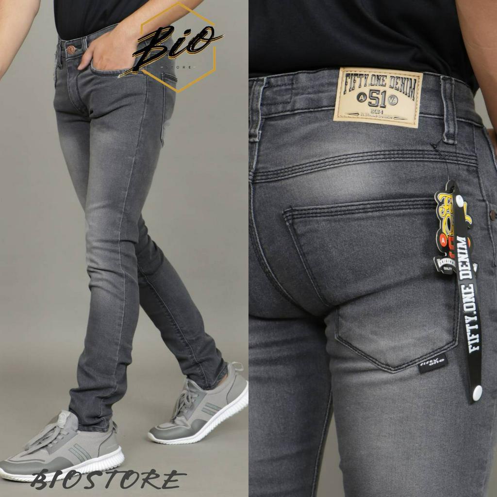 fifty onen denim 51 celana jeans pria celana sekiny pensil strecth celana panjang pria New premium semi slimfit