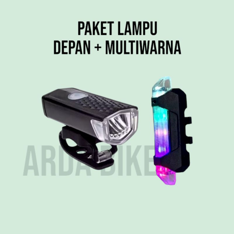 Paket Lampu Depan Belakang Sepeda USB Anti Air