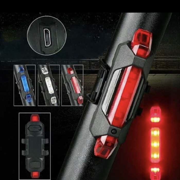 PROMO***Paket lampu sepeda depan dan belakang LED USB Charge