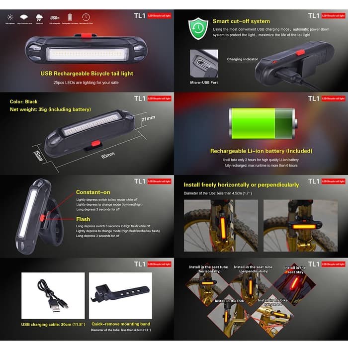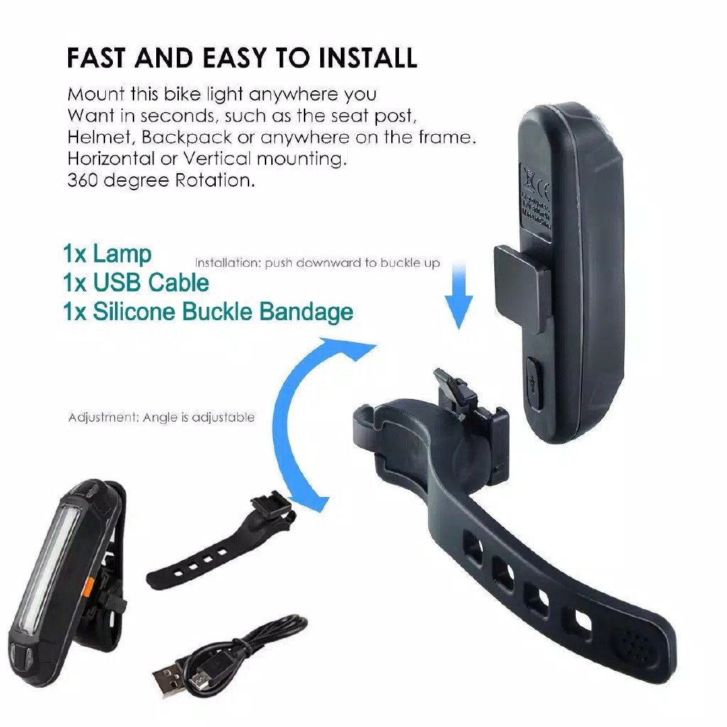 Lampu Belakang Depan Sepeda LED USB Cas Rechargeable Waterproof- Bicycle Lamp MTB