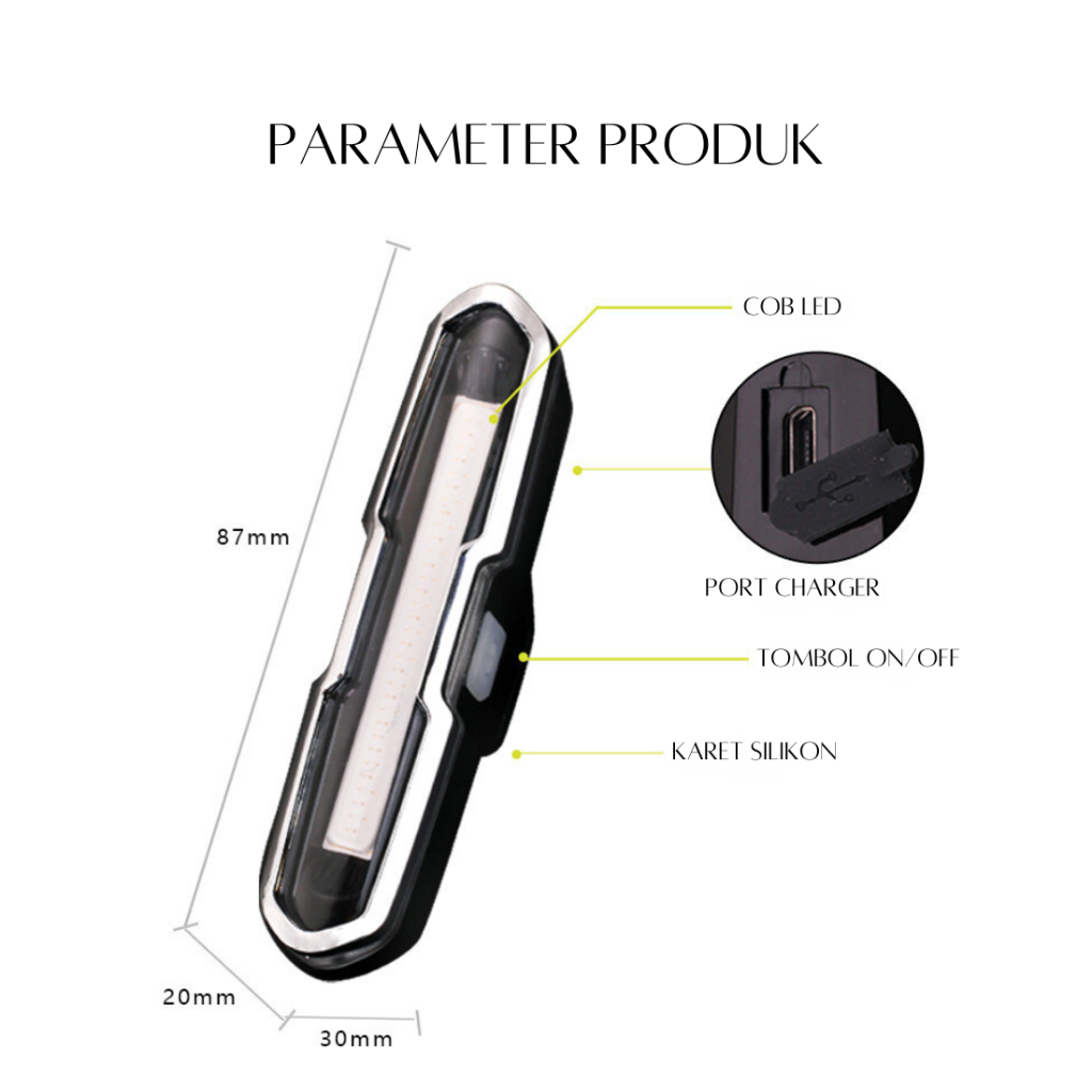 Lampu Belakang Sepeda 3 Warna Terang Merah/Biru/Putih Lampu Sepeda COB USB Rechargeable Anti Air