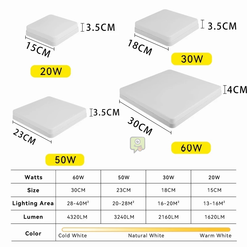 CHICHOME Lampu LED Plafon 48W 36W 18W Lampu Plafon Minimalis Lampu Kotak Lampu Ruang Tamu Lampu Kamar Lampu Kano