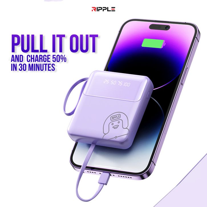 Power Bank Fast Charging Ripple Powerbank mini Portable 10000mAh Digital display 4 Cables Multiple Device Fast Charging