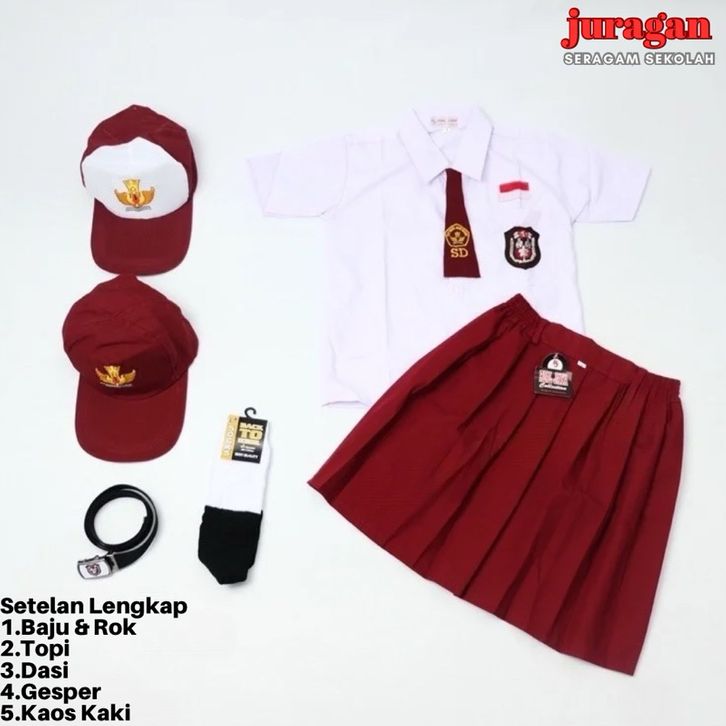 Setelan Super Lengkap Seragam Sekolah SD BAJU PENDEK ROK PENDEK Perempuan Cewek