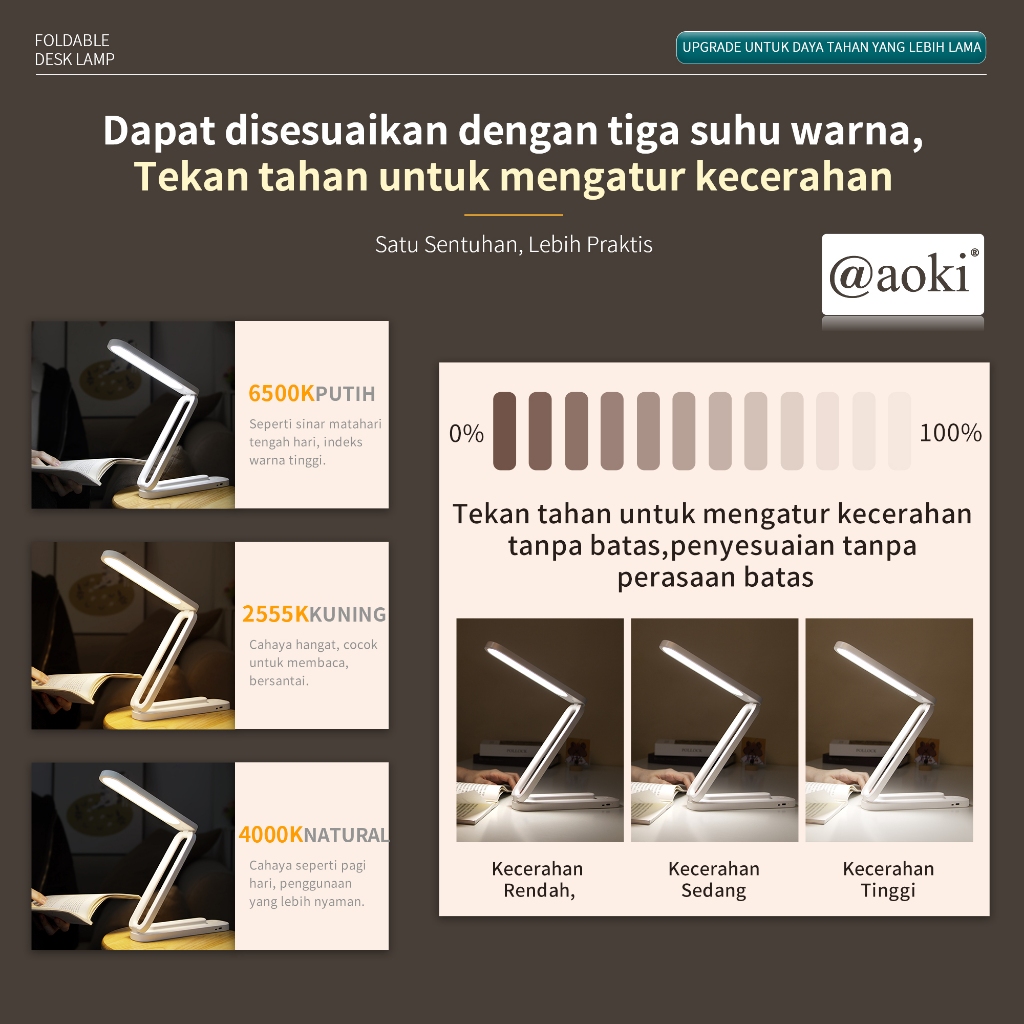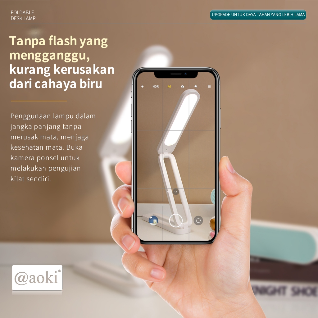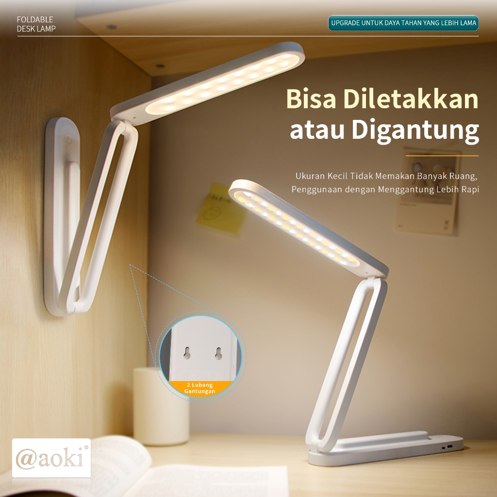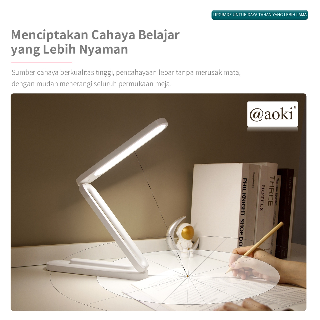 AOKI Lampu belajar lipat praktis 2400mah daya tahan lama dual baterai Baca Meja Kerja