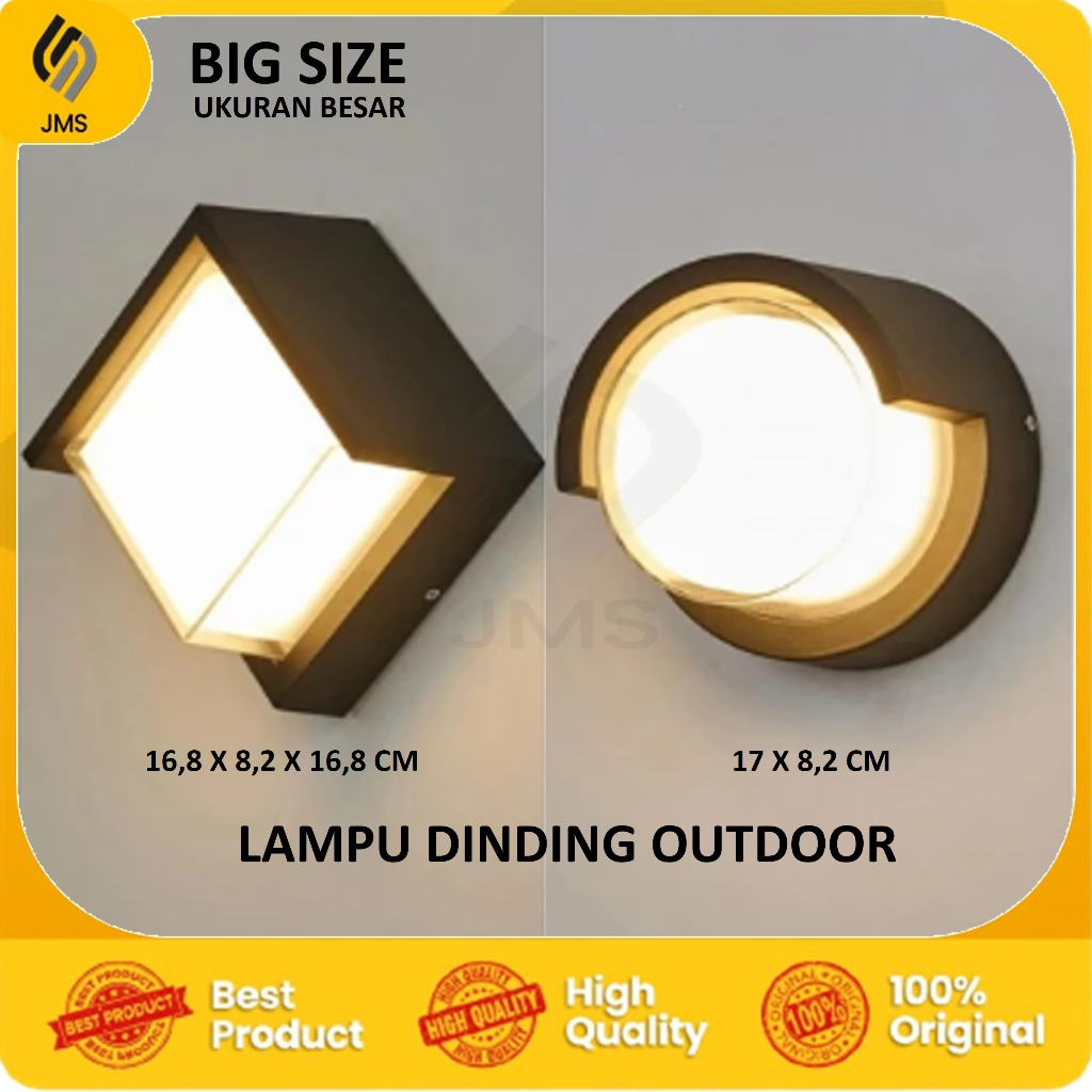 LAMPU DINDING OUTDOOR BULAT KOTAK UKURAN BESAR 12W TAHAN AIR Lampu Hias Pilar Tembok 12W