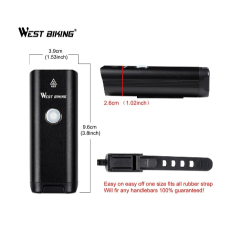 West Biking Lampu Sepeda USB Rechargeable 400LM 2200mAh 0701257