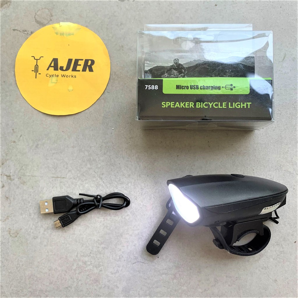 Lampu depan Klakson sepeda LED waterproof rechargeable Terang Nyaring