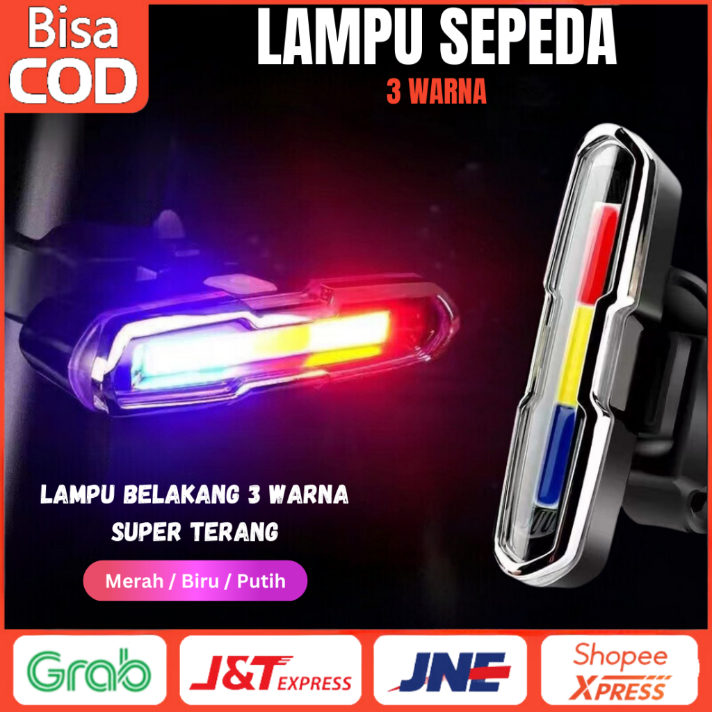 Lampu Belakang Sepeda 3 Warna Terang Merah/Biru/Putih Lampu Sepeda COB USB Rechargeable Anti Air