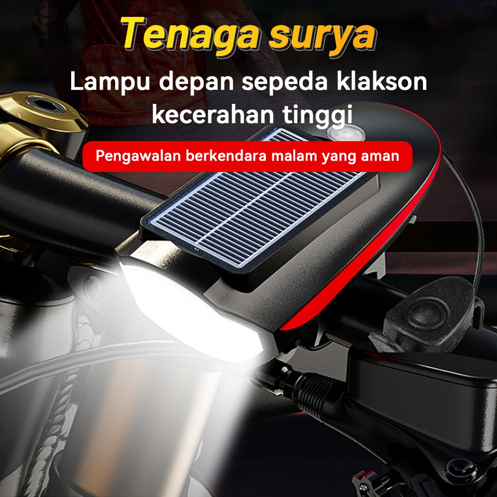 Lampu Sepeda dengan Bel Klakson 7598 Speaker 120dB LED Super Terang USB Isi Ulang Tahan Air Lampu Klakson Sepeda Bertena